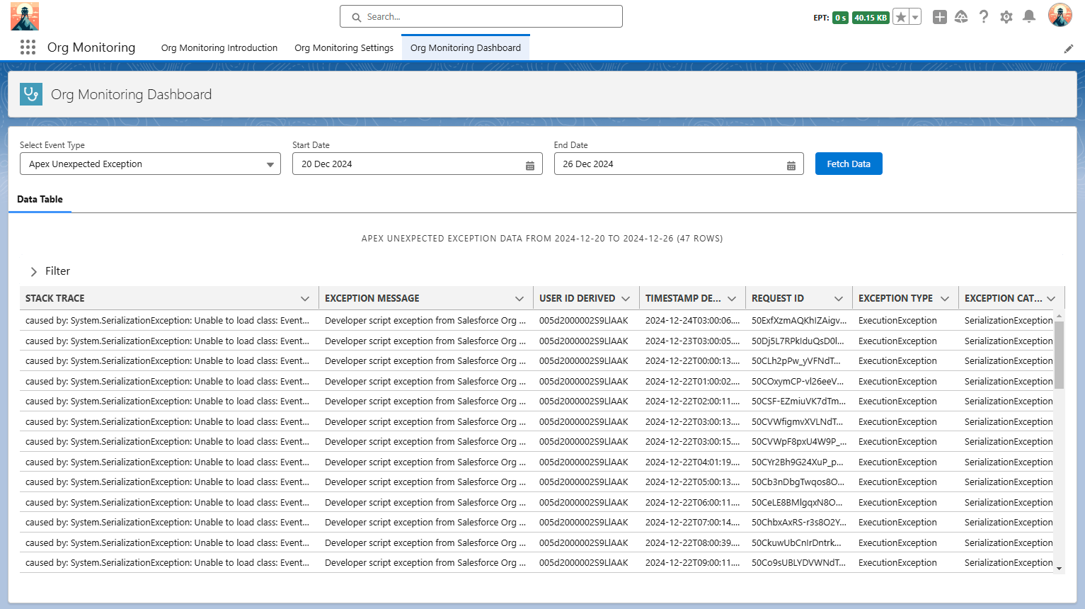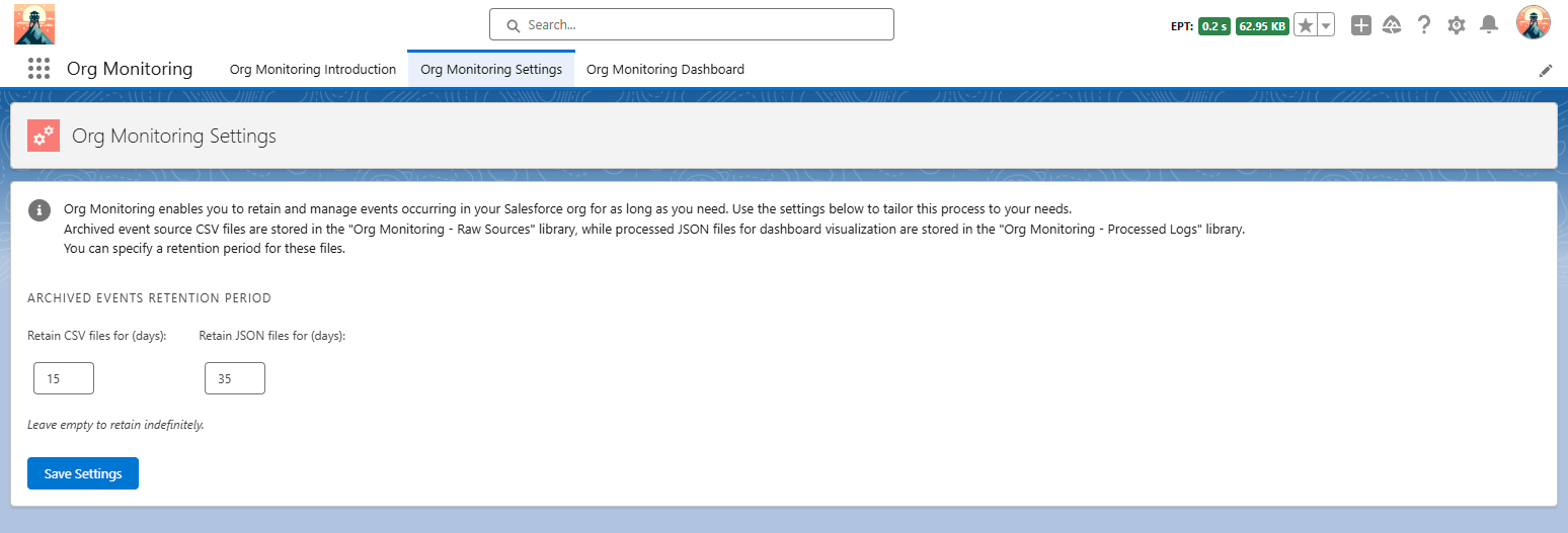 The Org Monitoring application helps you retain and manage events occurring in your Salesforce org. This manual provides step-by-step instructions for setting up and using the application.